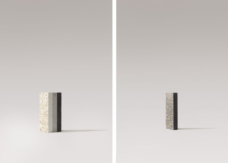 Corcrete is an environmentally friendly material developed by Design Studio Biruk constructed of natural cork and concrete. Although soft to touch, Corcrete is surprisingly durable and resilient making it suitable for furniture design. Currently, the range is available in three colours, white, grey and black and can come in customized panels or tile format.