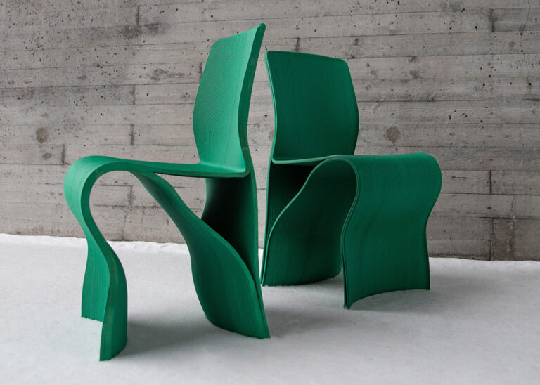 Kelp Chair is a 3D printed chair made from recycled maritime gear such as ropes and fishing nets. “The chair was created to bring attention to the fact that vast amount of known underwater kelp forests have been eradicated due to unsustainable fishing practices and rising ocean temperatures”.