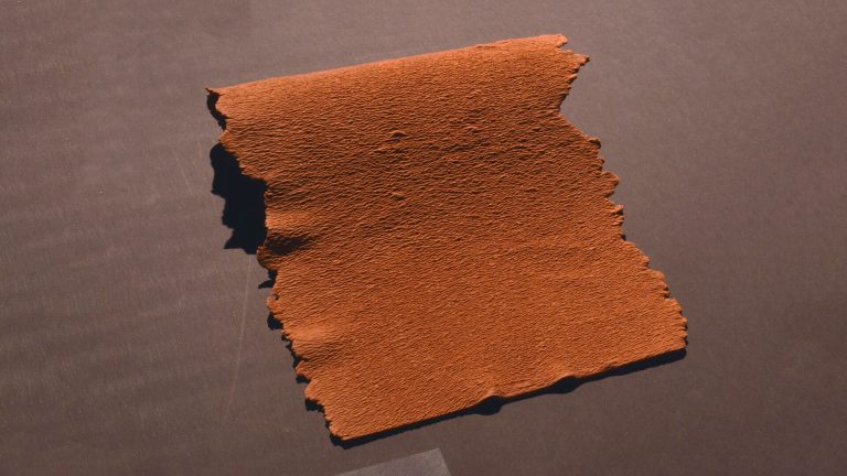 “A home made leather like material created with natural components like wood fibres & linseed oil.”