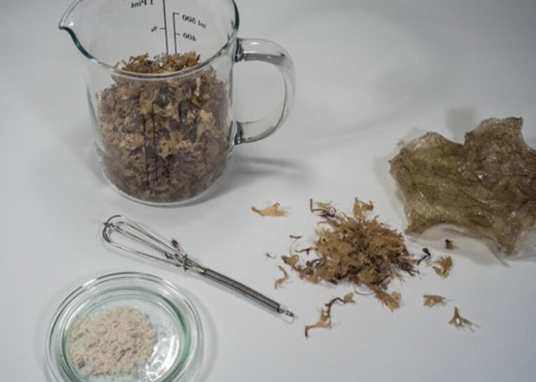 Alger by Natural Material Studio is an ongoing material research into seaweed and its potential as a bio textile. The product is constructed of seaweed extract and softener. Many different techniques are being explored to colour the fabric, for example dried and powdered Spirulina algae has been used to turn the textile green.