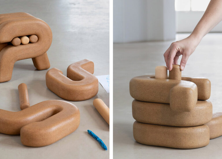 As part of Dutch Design Week, design duo Eneris Collective have produced a unique furniture range called Notalo Kids made from recycled olive pips, or more specifically Reolivar.