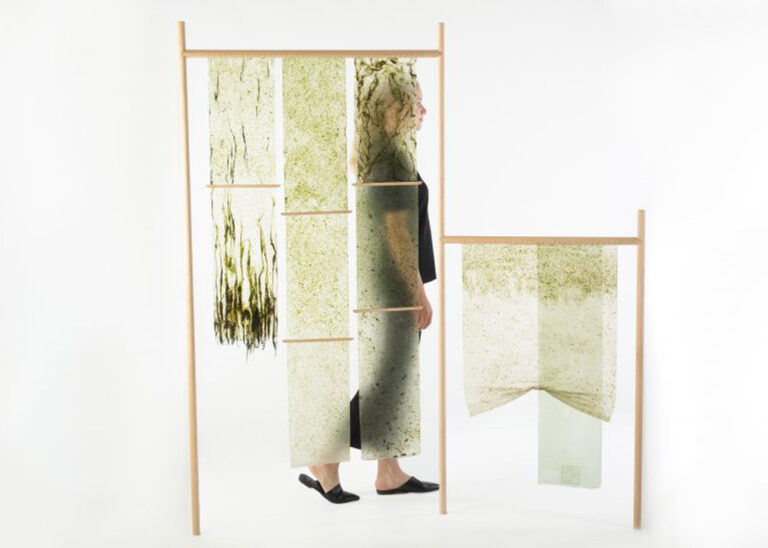 SEAmpathy is a range of partitions and screens designed by Daniel Elkayam from Israel. Each partition is designed to maintain the algae’s smell and texture whilst showcasing how it can be reimagined in a unique way. The project is a key example of biophilic design whereby humans having a natural tendency to make connections and relationships with nature.